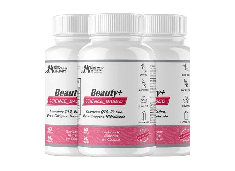 3X Coenzima Q10, Biotina, Uva e Colágeno (Cabelo, Pele e Unhas 180 Cápsulas) Beauty+ Imperium Nutrition