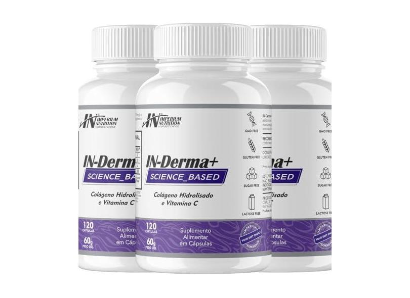 O menor preço encontrado no Brasil para 3X Colágeno + Vitamina C (360 Cápsulas) IN-Derma+ Imperium Nutrition atualmente é R$ 124,98.