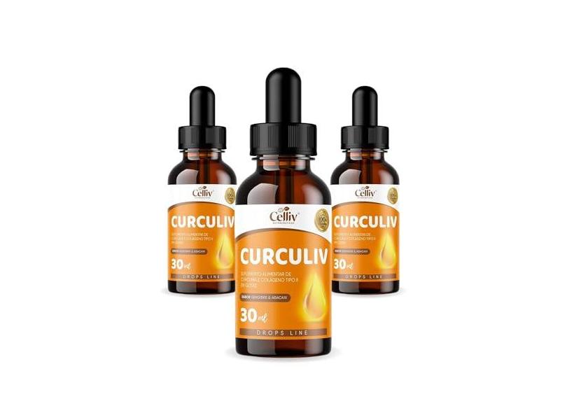3x Curculiv - Cúrcuma e Colágeno Tipo II Gotas 30ml Celliv