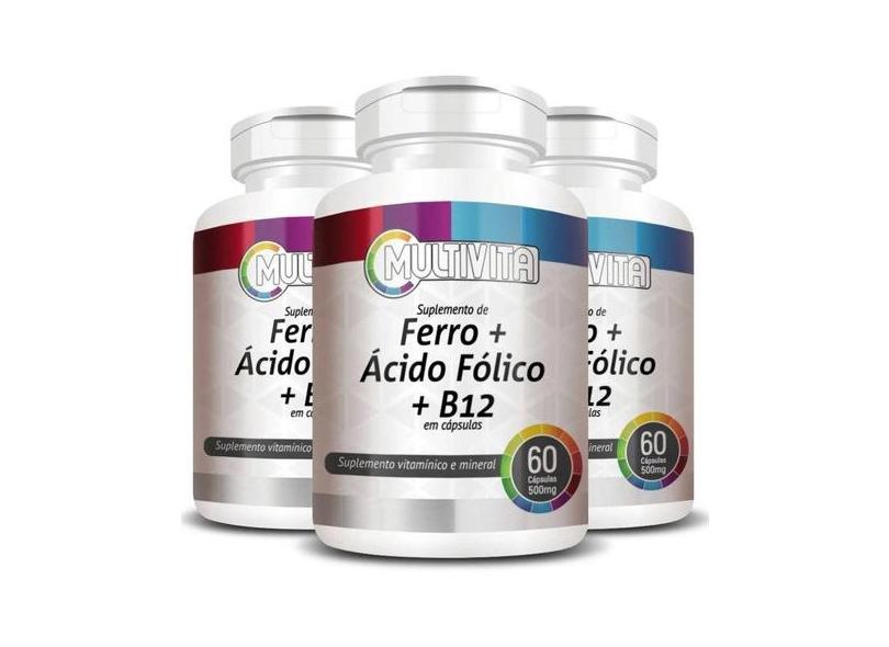 3x Ferro + Ácido Fólico + Vitamina B12 500mg 60 Caps
