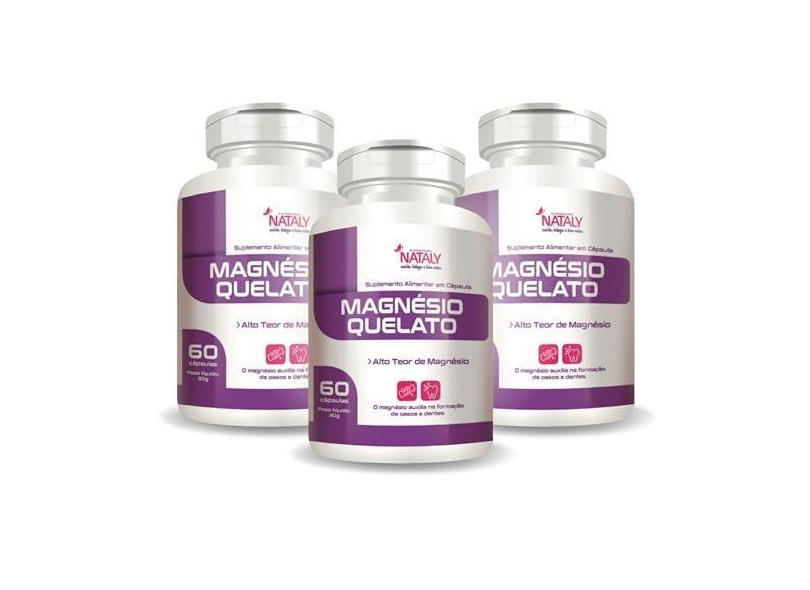 3x Magnésio Quelato 260mg Por Porção 60 Nataly