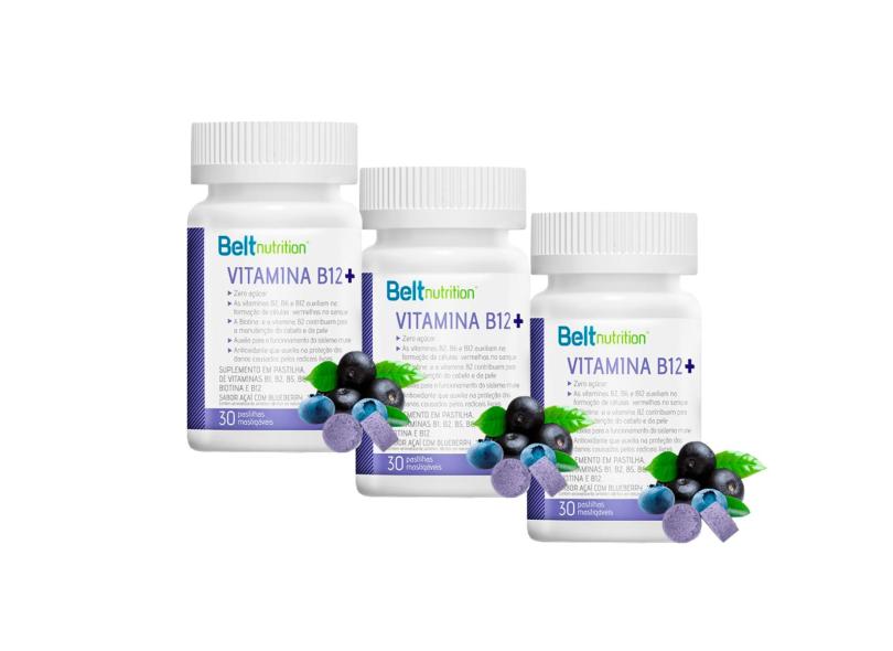 3x Vitamina B12 Mastigável-30 Pastilhas-Açaí c/ blueberry Belt Nutrition