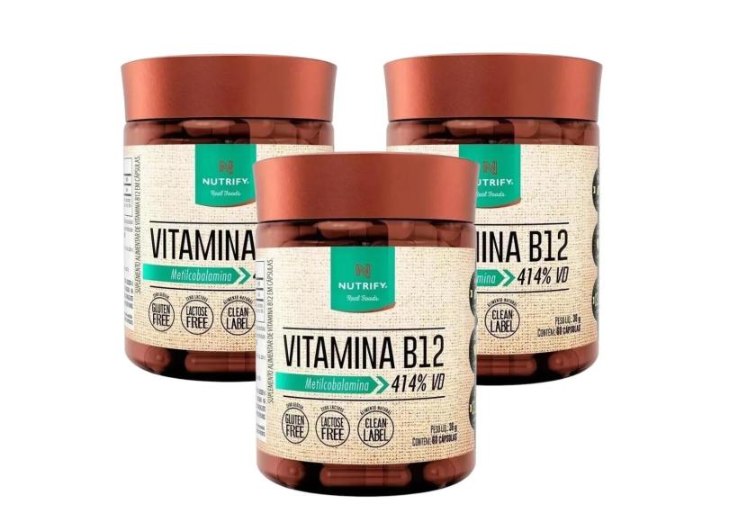 3X Vitamina B12 Vegana Nutrify 60 Cáps Metilcobalamina 414% Vd Sem Sabor