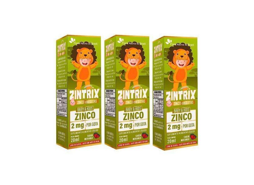 3X Zintrix Zinco Em Gotas Baby & Kids 2Mg Por Gota 20ml - Flora Nativa