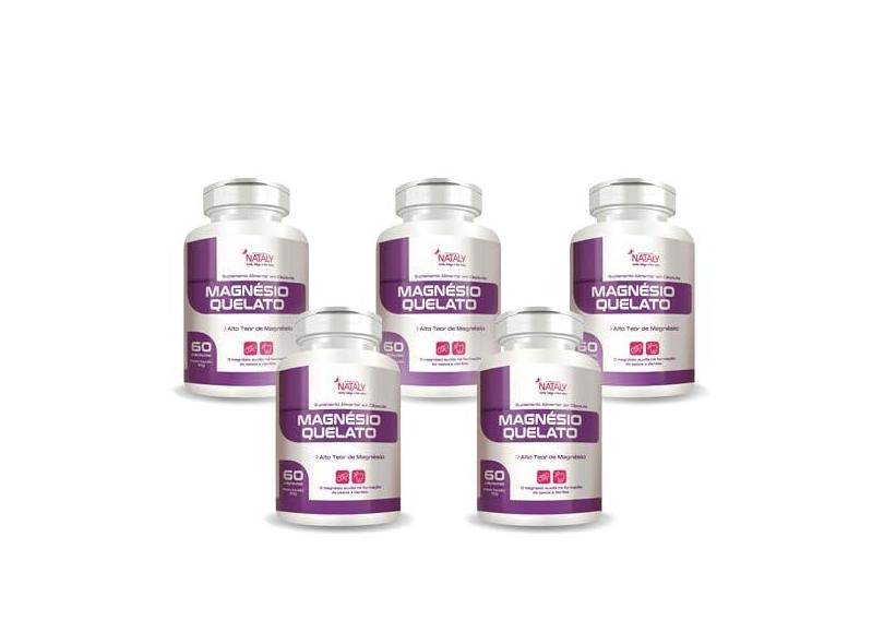 5x Magnésio Quelato 260mg Por Porção 60 Caps Nataly