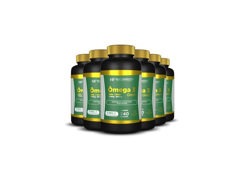 6x ômega 3 240 caps epa 540mg + dha 360mg hf suplementos, green