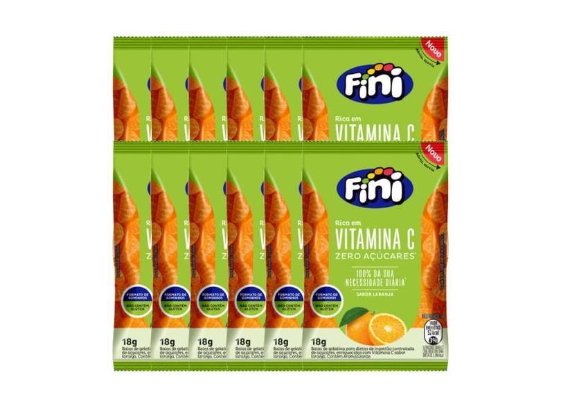 Bala Gelatina Fini Zero Açúcar Vitamina C contendo 12 pacotes de 18g c