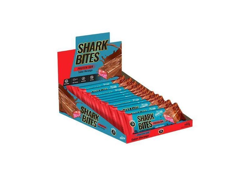 Barra De Proteína Shark Bites Sabor Morango 12 Unidades De 40g Cada Sh