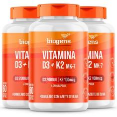 Biogens Kit 3X Vitamina D3 2000Ui + K2 Mk7 100Mcg Azeite Oliva 60 Caps
