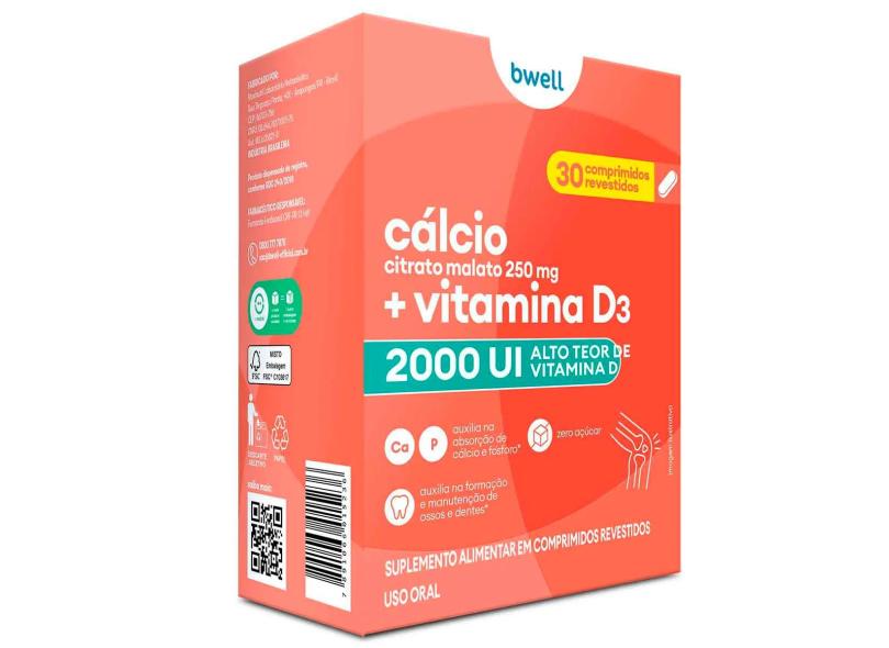 Cálcio Citrato Malato 250Mg + Vitamina D3 2.000Ui Bwell 30 Comprimidos