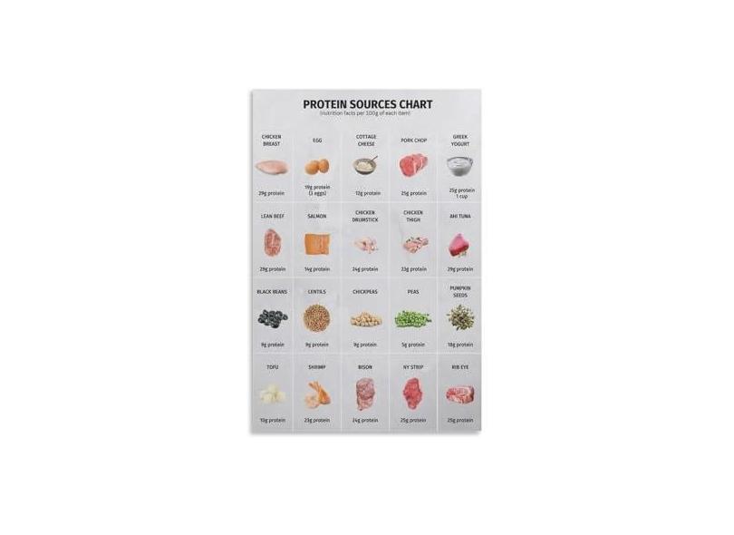 Cartazes, gráfico de alimentos com alto teor de proteína, pôster, gráfico de fonte de proteína, pôster, pintura decorativa, pôsteres de parede em tela, impressão de imagem de arte moderna para quarto
