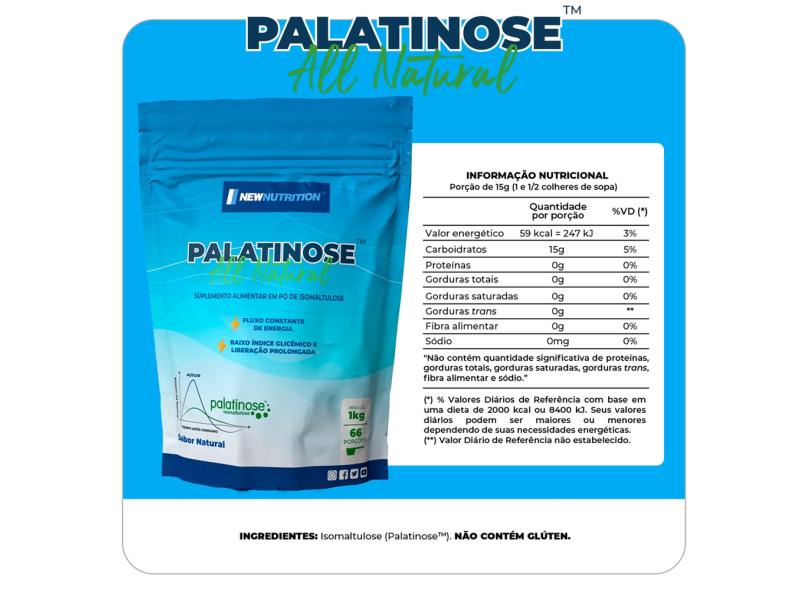 O menor preço encontrado no Brasil para Combo 2 Palatinose 1kg Newnutrition atualmente é R$ 324,58.