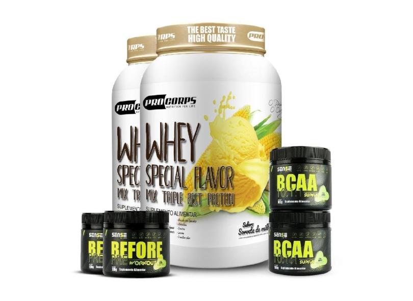 Combo 2 Whey Protein 840g + 2 Bcaa + 2 Pré Treino-Unissex