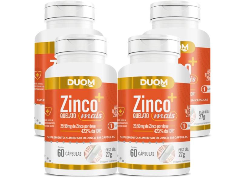 Combo 4 Zinco Quelato Mais Ultra Concentrado 60 Caps Cada Total 240 Caps Duom