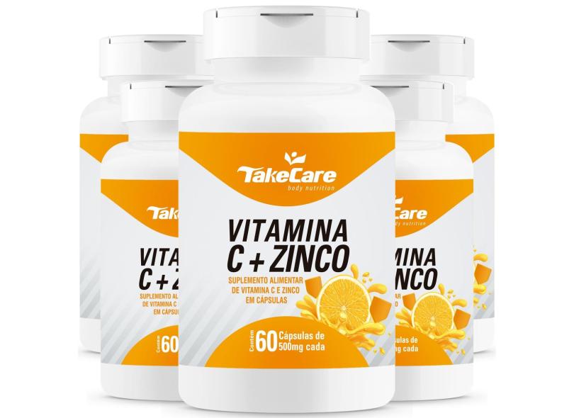 COMBO 5 VITAMINA C 500MG + ZINCO 7MG COM 60 CAPSULAS CADA TOTAL 300 CAPSULAS - TAKE CARE Fhom