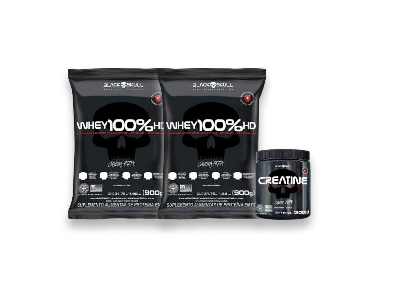 COMBO BS - 2X 100% WHEY BLACK SKULL + 1X CREATINA 300G BLACK SKULL-Unissex
