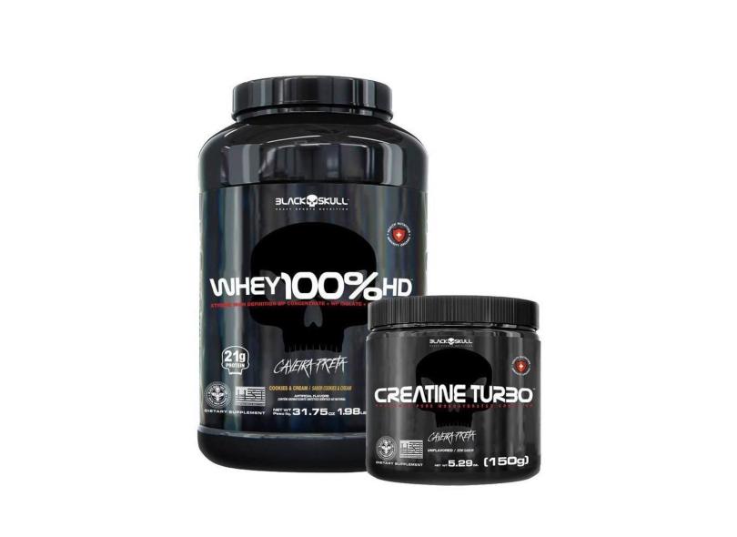 Combo Whey Protein 100%HD 900g e Creatina Turbo de 150g - BlackSkull-Unissex
