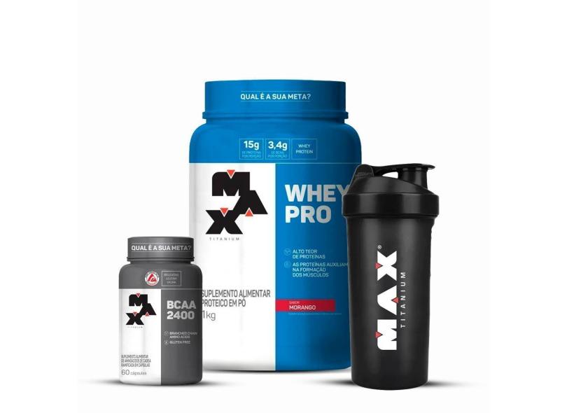 Combo Whey Protein 1kg, BCAA 60 Caps e Coqueteleira 700ml - Max Titanium-Unissex