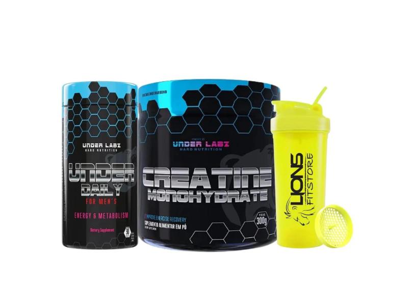Creatina 100% Monohidratada Under Labz 300 G + Under Daily 90 Tabs Under Labz + Coqueteleira Cor Sortida 700 Ml Sem Sabor