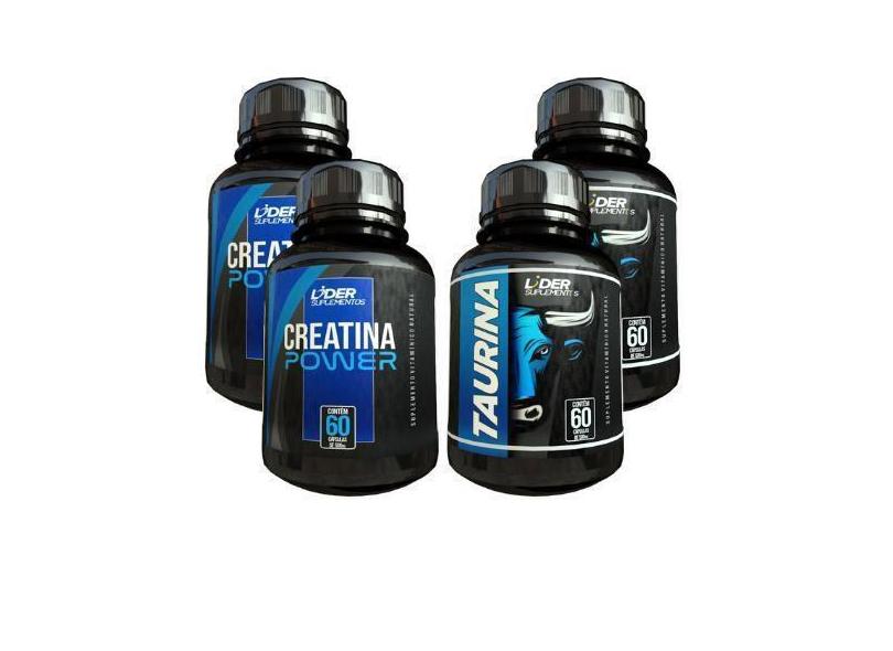 Creatina E Taurina - 60 Cápsulas De 500Mg Kit Com 4 Potes - Lider Vend