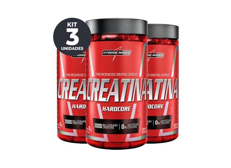 Creatina Pura 120 Caps Hardcore Integral Kit 3 Potes - Integralmedica
