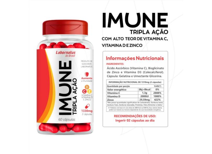 IMUNI TRIPLA AÇAO 60 CÁPSULAS 650MG LABORNATUS - VITAMINA C D e ZINCO