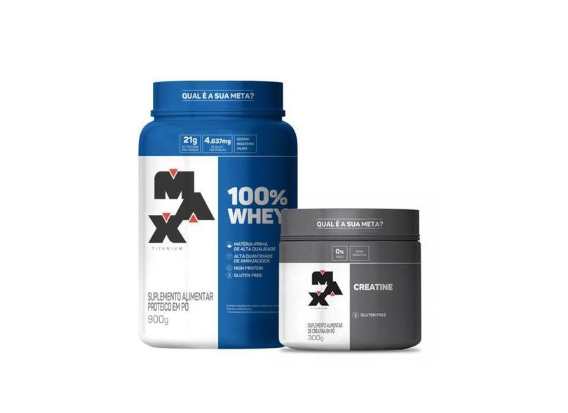 Kit 100% Whey Max 900G Pote + Creatina 300G Pura -Max Titanium - Maxti