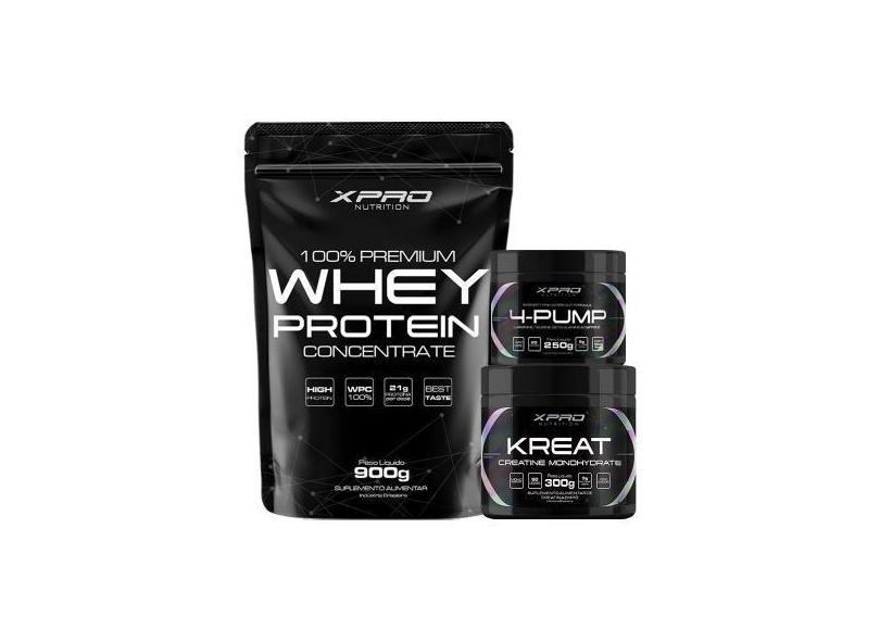 Kit 100% Whey Protein 900G + Creatina Kreat 300G + Pré-Treino 4-Pump 2