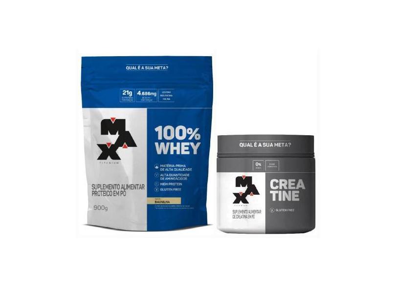 Kit 100% Whey Refil 900G Baunilha + Creatina Pura 100G Max - Max Titan