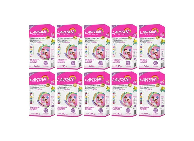 O menor preço encontrado no Brasil para Kit 10x Lavitan infantil suplemento vitamínico mineral 240ml sabor tutti frutti cimed atualmente é R$ 256,80.