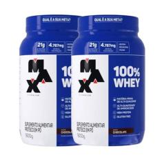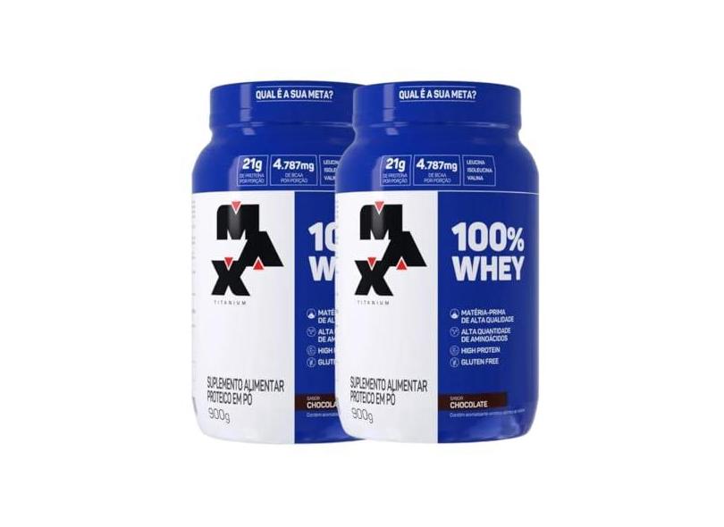 O menor preço encontrado no Brasil para Kit 2 100% Whey Max Titanium Pote 900g Chocolate Suplemento atualmente é R$ 299,00.