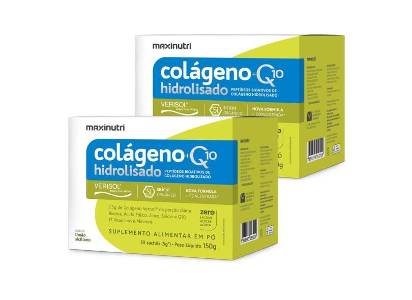O menor preço encontrado no Brasil para Kit 2 Colágeno Verisol Sachê Limão Siciliano + Q10 Maxinutri atualmente é R$ 199,80.