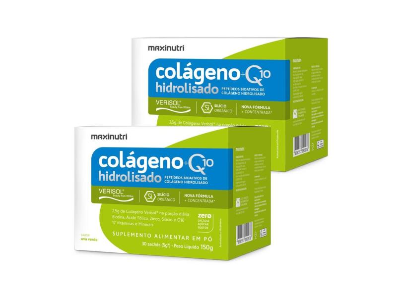 Kit 2 Colágeno Verisol Sachê Uva Verde 30x5g + Q10 Maxinutri