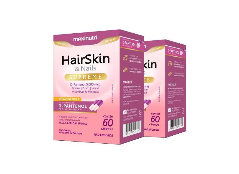 O menor preço encontrado no Brasil para Kit 2 HairSkin Supreme D-Pantenol + Biotina 60 Cáps Maxinutri atualmente é R$ 110,00.