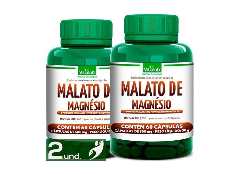 O menor preço encontrado no Brasil para Kit 2 Malato De Magnésio Vitalab 500Mg 60 Cápsulas atualmente é R$ 57,90.