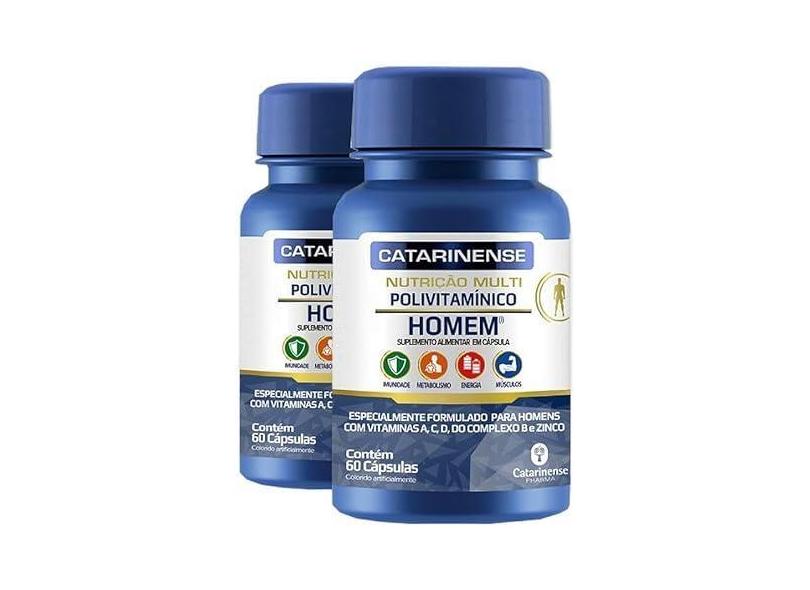 O menor preço encontrado no Brasil para Kit 2 Polivitamínico Homem Catarinense 60 cápsulas atualmente é R$ 59,90.