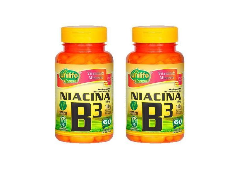 O menor preço encontrado no Brasil para Kit 2 Vitamina B3 (Niacina) - 60 Cápsulas - Unilife atualmente é R$ 56,76.