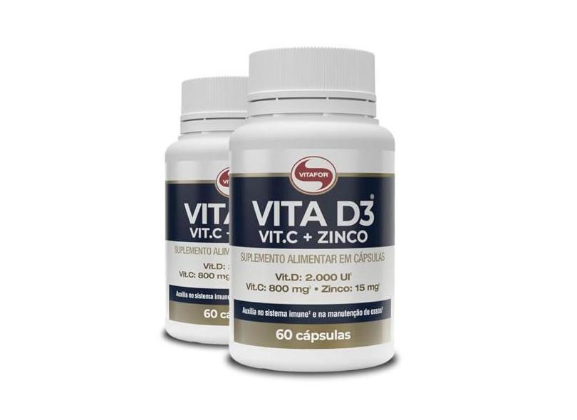 O menor preço encontrado no Brasil para Kit 2 Vitamina D3 + C + Zinco Vitafor 60 cápsulas 1g atualmente é R$ 128,00.