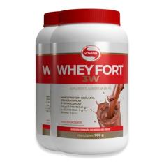 O menor preço encontrado no Brasil para Kit 2 Whey Fort 3W Vitafor 900g Chocolate atualmente é R$ 385,20.