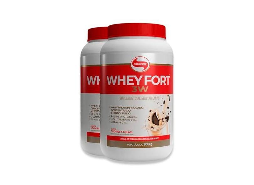 O menor preço encontrado no Brasil para Kit 2 Whey Fort 3W Vitafor Cookies & Cream 900g atualmente é R$ 359,99.