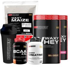 O menor preço encontrado no Brasil para Kit 2 x Whey Protein Waxy Whey 900g + BCAA 100g + Creatina 100g + Waxy Maize 800g + Coque-Unissex atualmente é R$ 95,92.