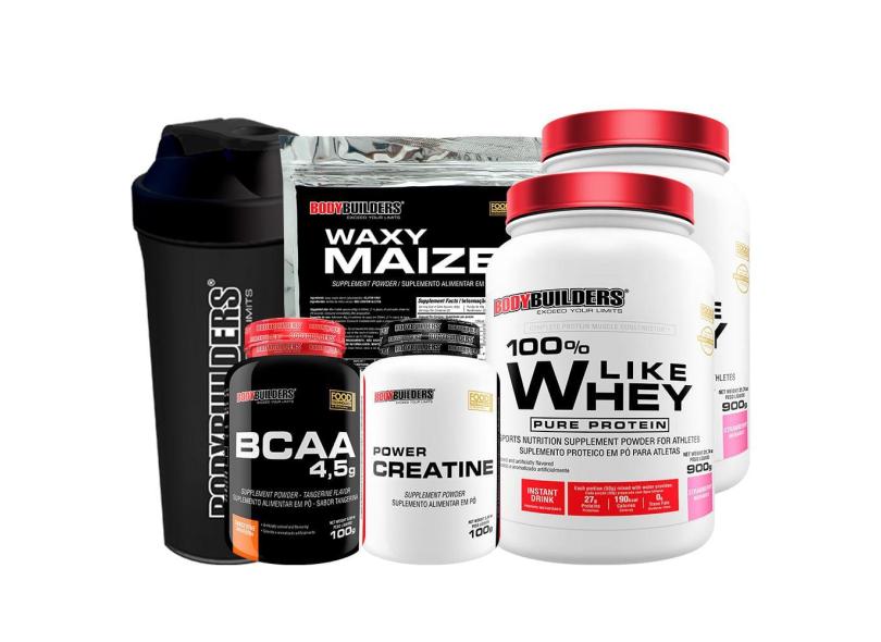 Kit 2x 100% Like Whey 900g + Waxy Maize 800g + Power Creatina 100g + BCAA 100g + Coqueteleira - Bodybuilders Sabor: Mora