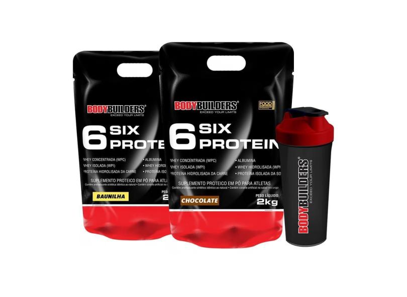 Kit 2x 6 Six Protein 2kg + Coqueteleira Bodybuilders-Unissex