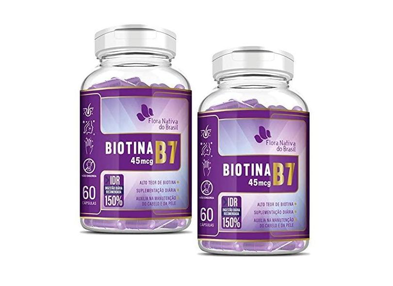 O menor preço encontrado no Brasil para Kit 2x Biotina (vitamina B7) 60 cápsulas - Flora Nativa atualmente é R$ 57,40.