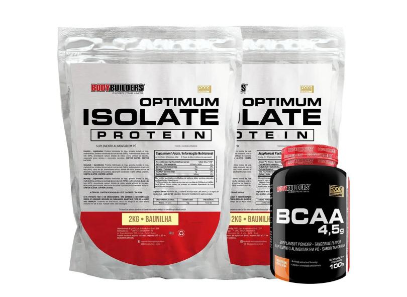 Kit 2X Optimum Isolate Whey Protein 2Kg + Bcaa 100G Sabor Baunilha - Bodybuilders