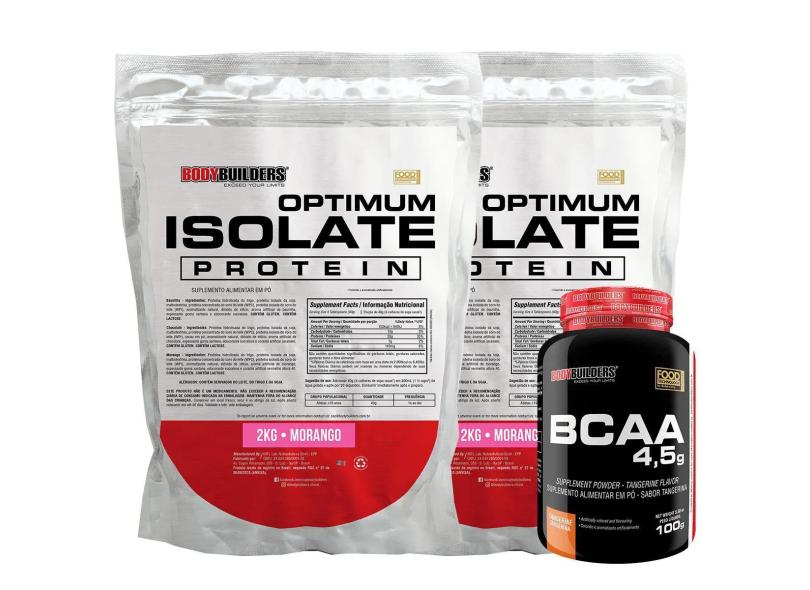 Kit 2X Optimum Isolate Whey Protein 2Kg + Bcaa 100G Sabor Morango - Bodybuilders