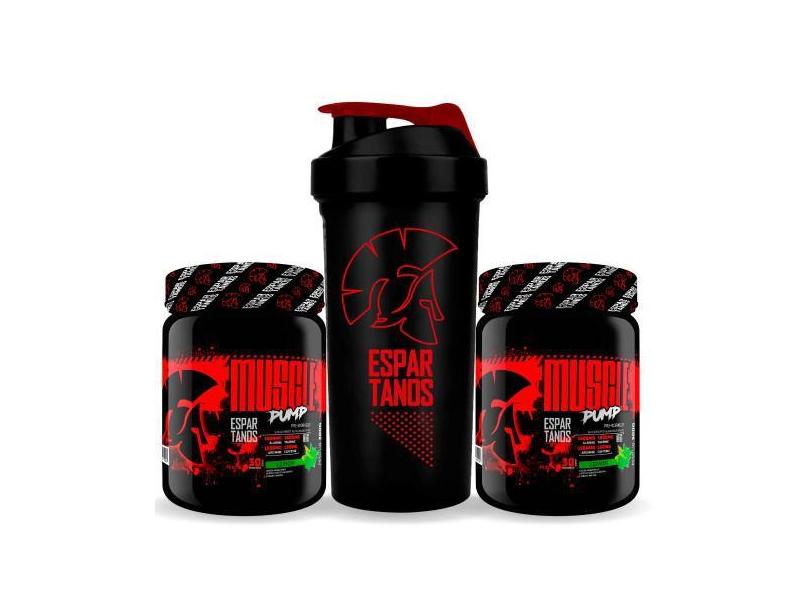 O menor preço encontrado no Brasil para Kit 2X Pré Treino Muscle Pump 300G + Coqueteleira - Espartanos Supleme atualmente é R$ 89,90.