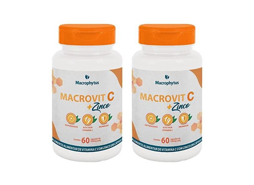 O menor preço encontrado no Brasil para KIT 2X Vitamina C 1000mg + Zinco 14mg 60 Cápsulas - Macrophytus atualmente é R$ 74,00.