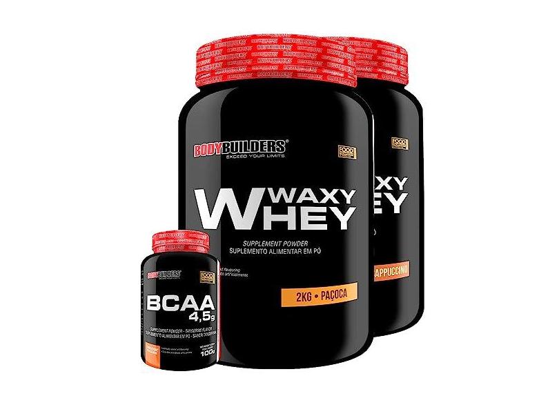 KIT 2x Waxy Whey 2kg + BCAA 1kg Tangerina - Bodybuilders (Cappuccino e Paçoca)