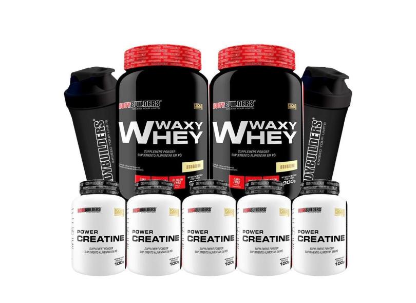 O menor preço encontrado no Brasil para Kit 2x Waxy Whey 900g + 5x Power creatina 100g + 2x Coqueteleira - Bodybuilders-Unissex atualmente é R$ 119,92.